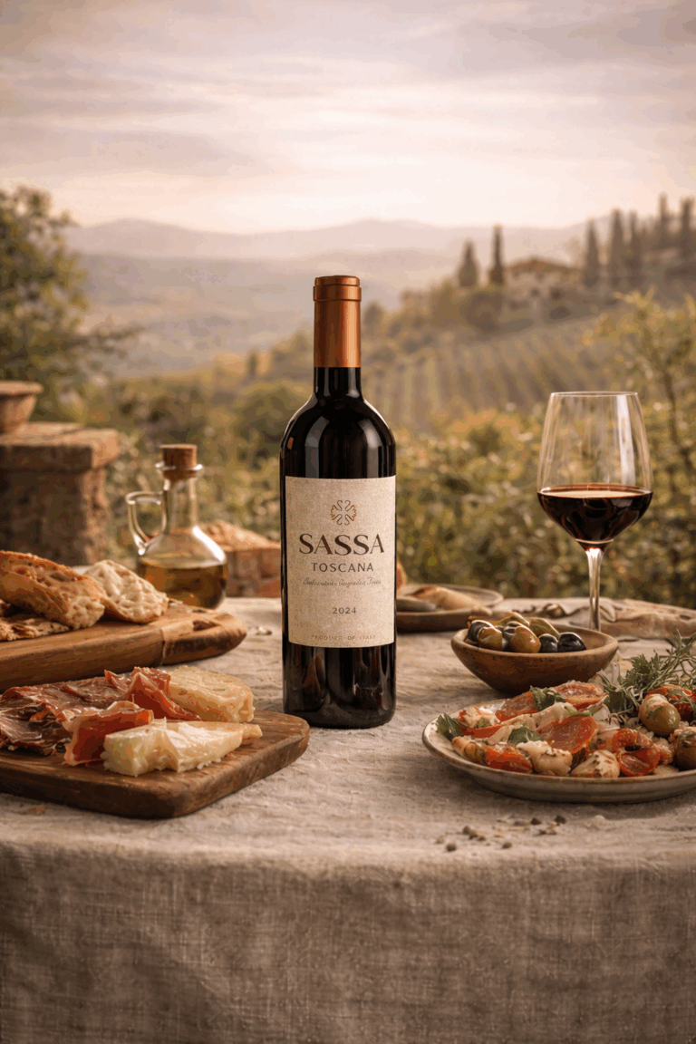 Sassa Toscana är det perfekta husvinet: balanserat, tillgängligt och stilrent. Ett utmärkt val till smakrika kötträtter, krämiga pastarätter, italienska charkuterier och lagrade ostar – men lika gott att njuta av på egen hand.